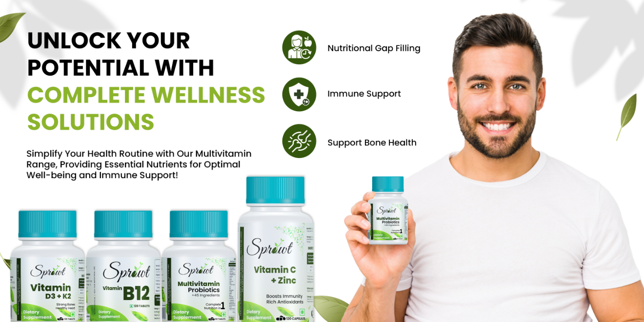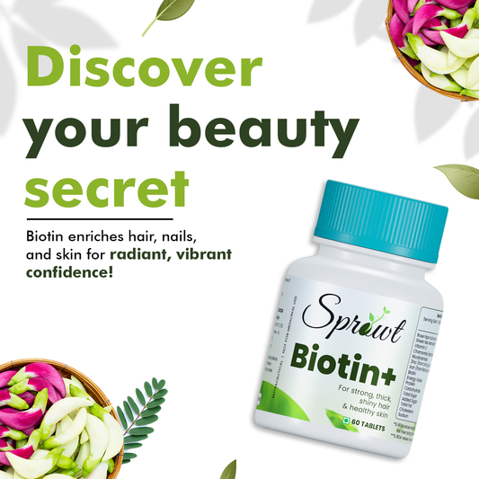 Sprowt Biotin + Tablet | Supplement For Strong Thick Hair & Glowing Skin | Improve the Energy Level | With Vitamin C, Green tea, Rosehip Extracts | Men & Women | 60 Biotin Veg Tablets