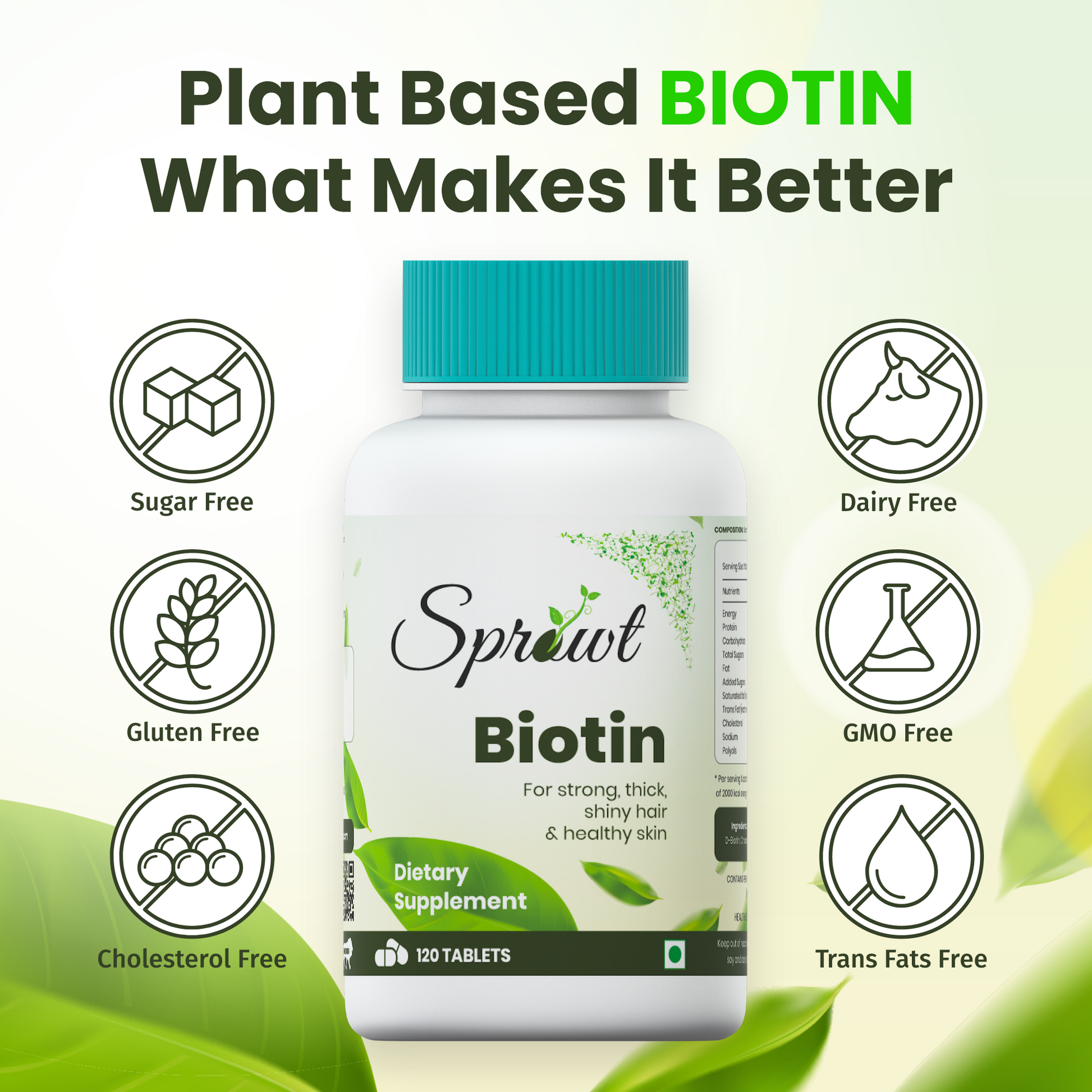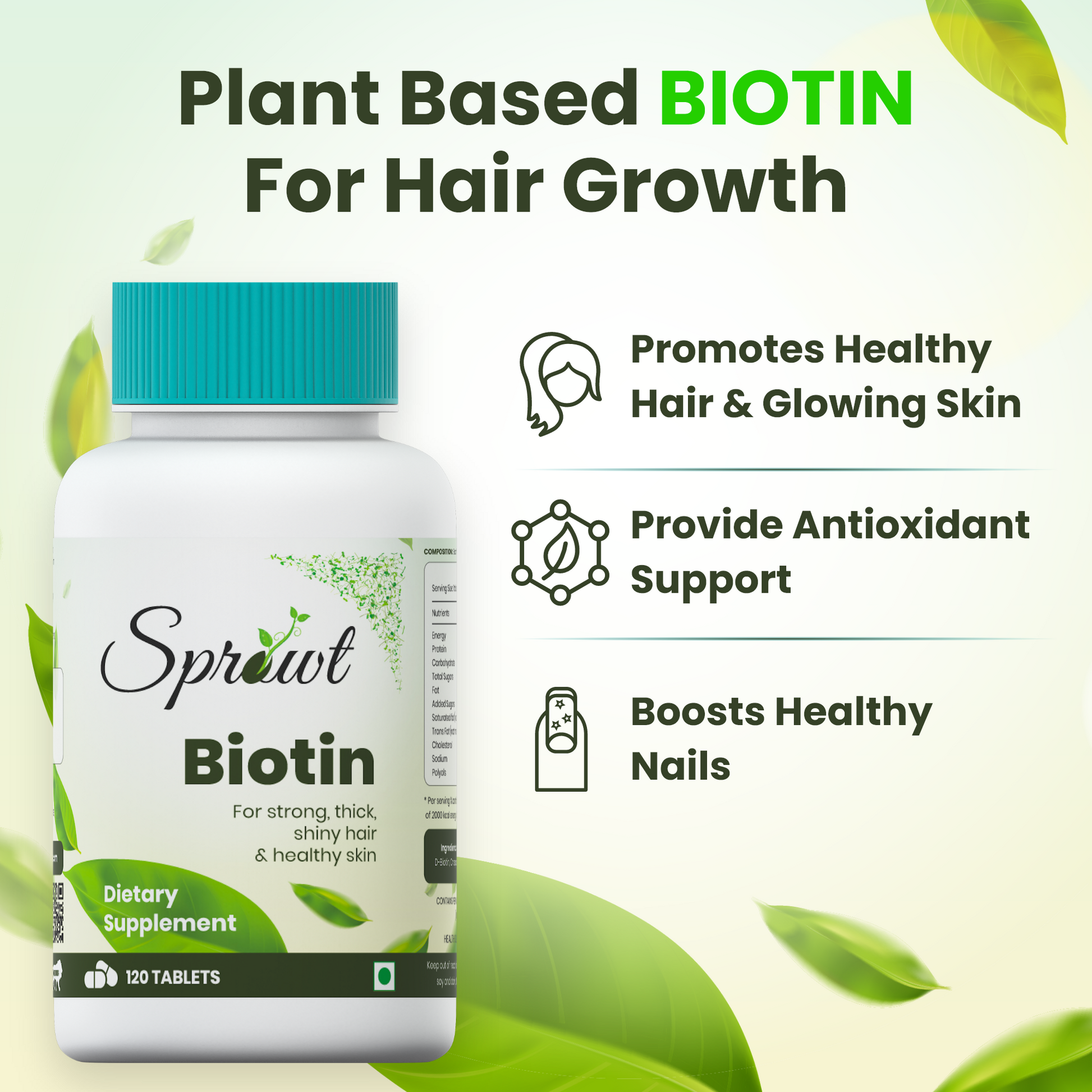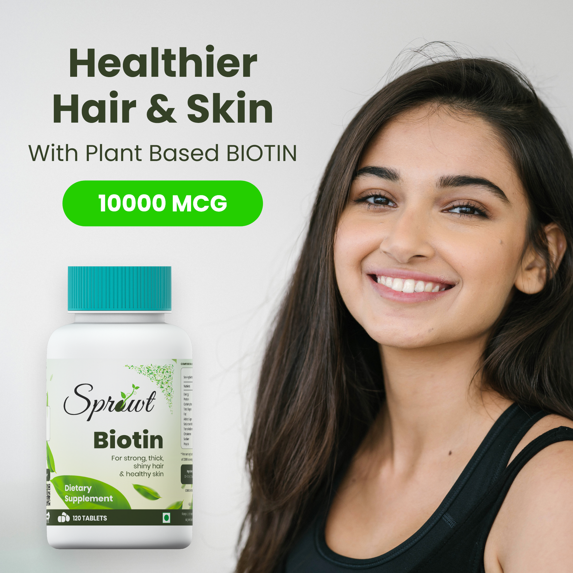 1.Plant Based Biotin Tablet for Hair Growth, Skin & Nails - 10000 mcg