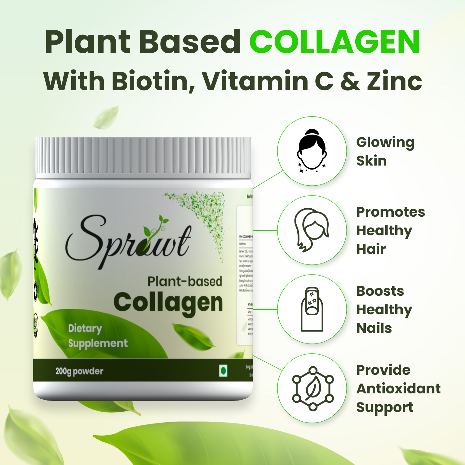 Care Instructions: Keep out of reach of children & Not to exceed the recommended daily Usage, Package Contains: 200 g of Plant-Based Collagen Dietary Supplement.