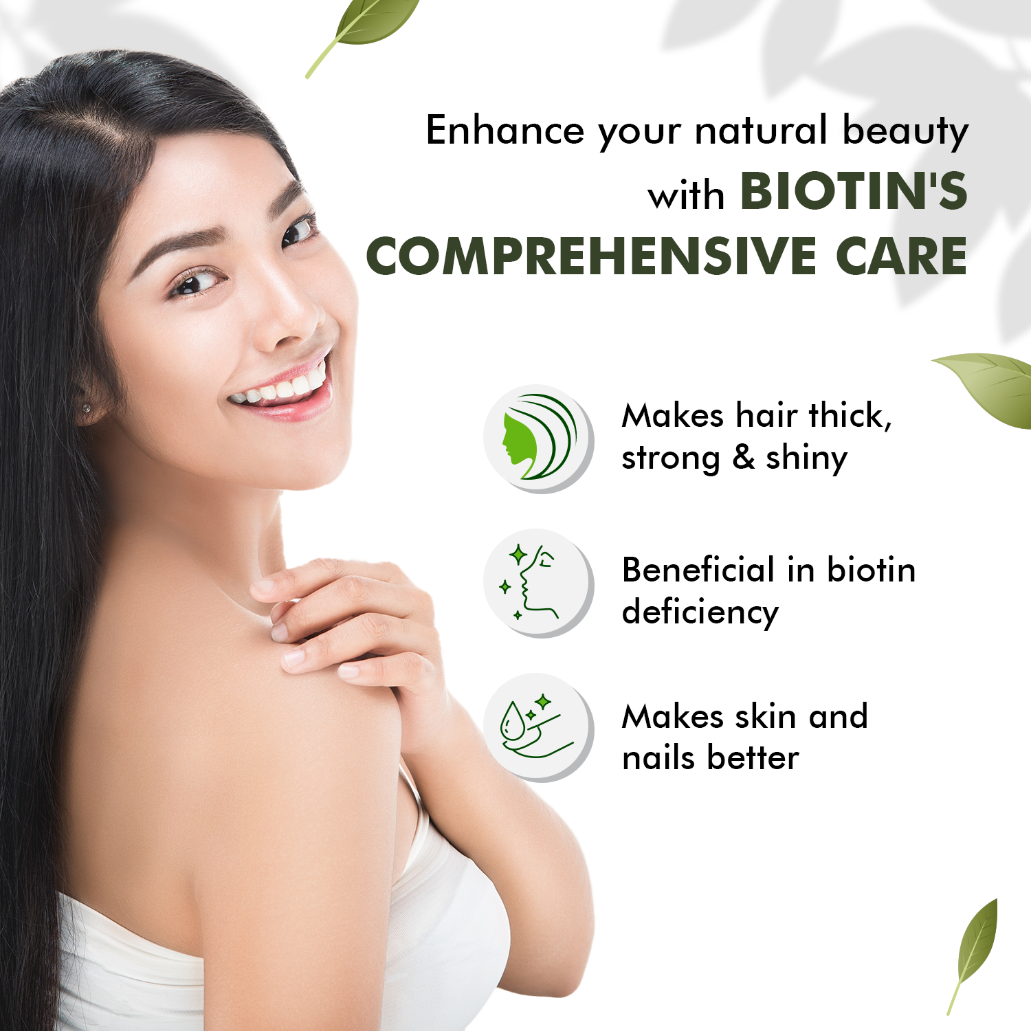 - Biotin helps reduce hair breakage, enhances hair growth, and maintains the overall health and appearance of your hair.