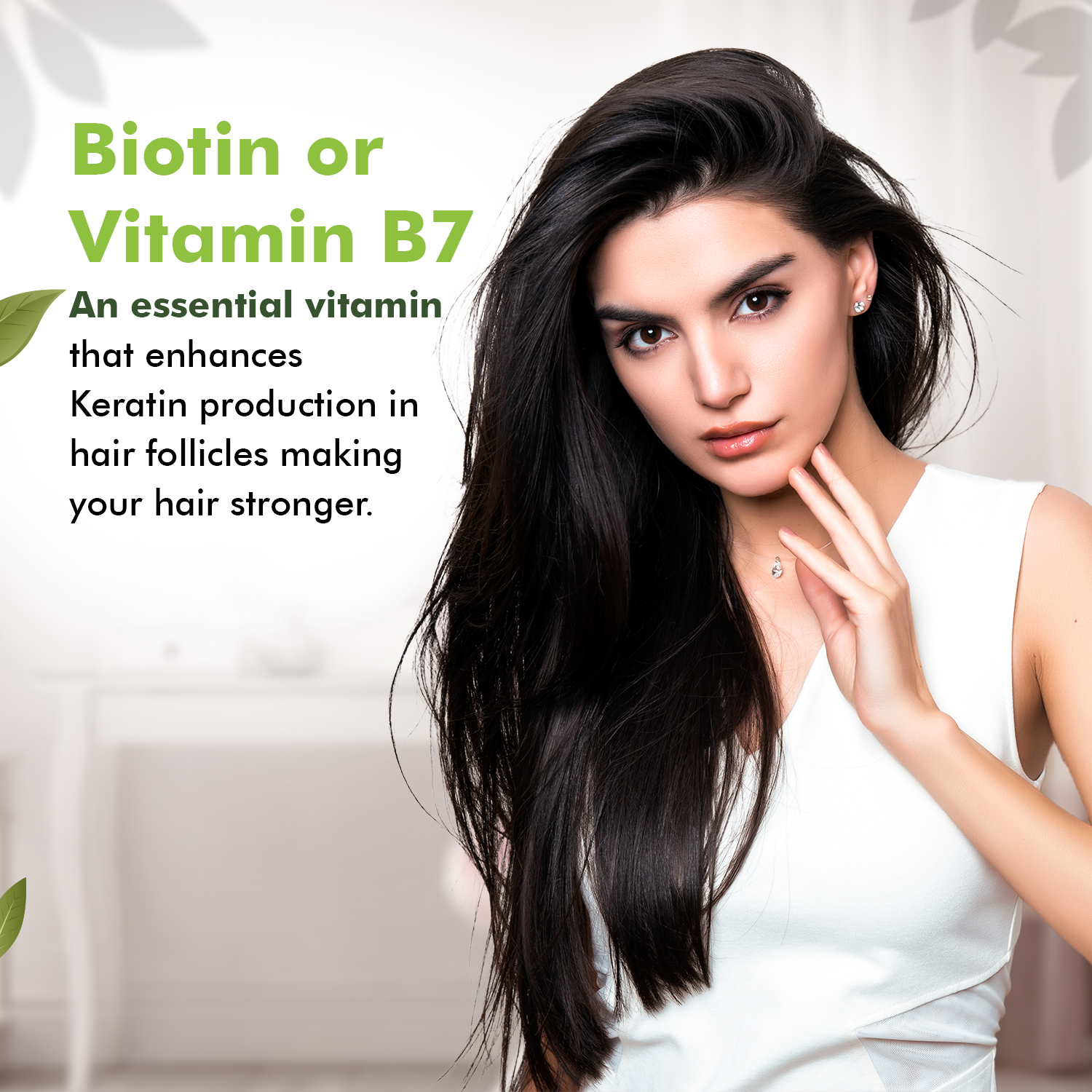 - Biotin helps reduce hair breakage, enhances hair growth, and maintains the overall health and appearance of your hair.