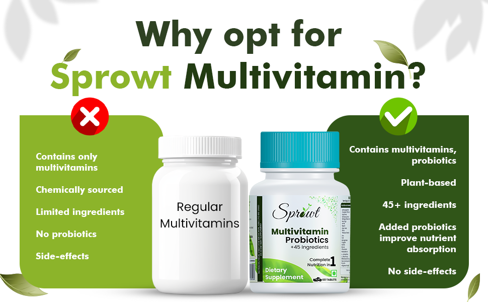 Sprowt Multivitamin With Probiotics -45 Ingredients | For Men & Women | Veg 60 Capsules (60 Capsules)