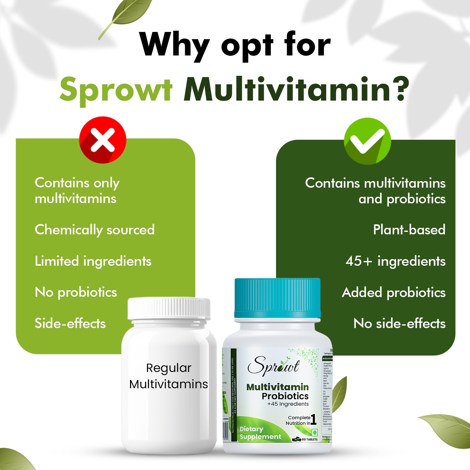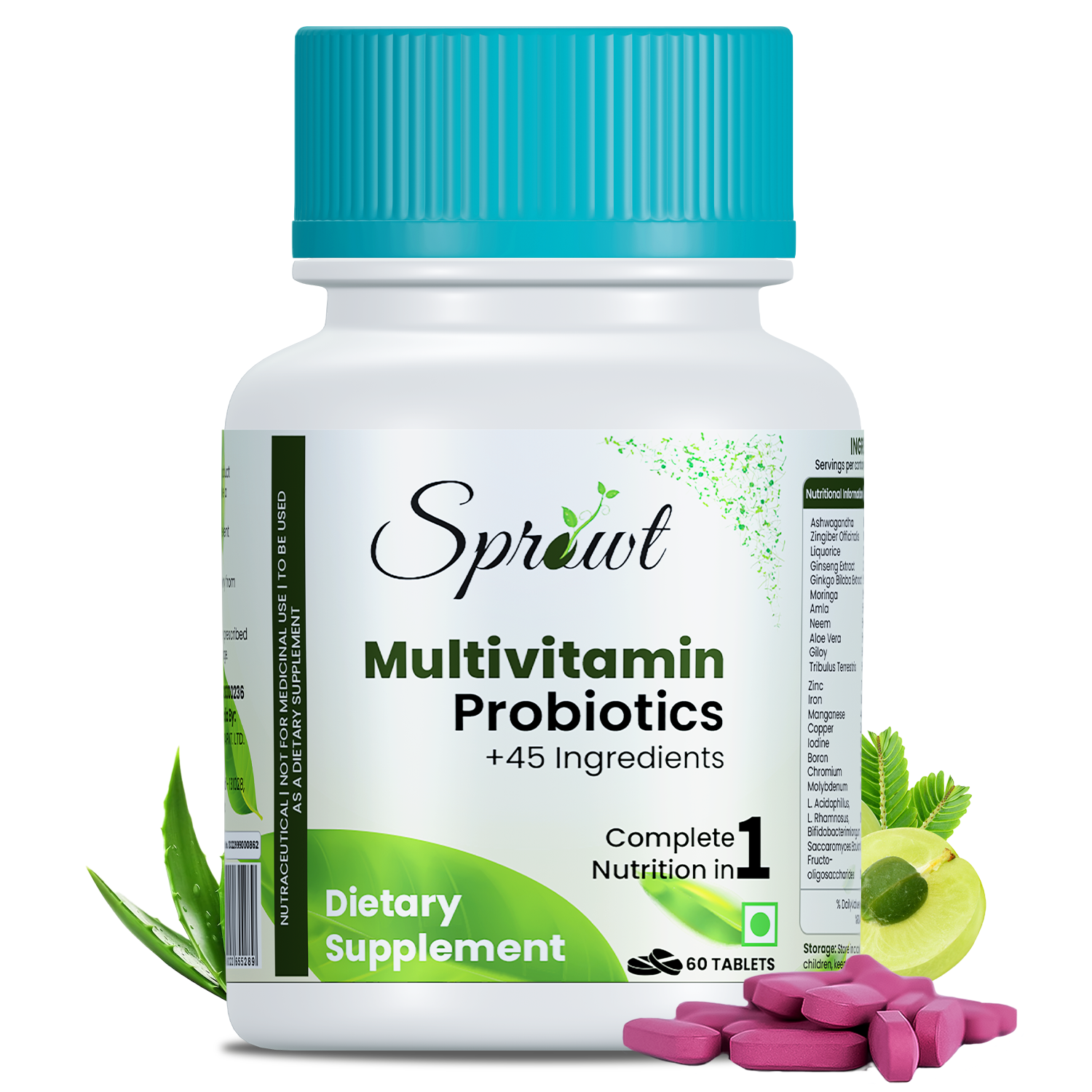 Sprowt Multivitamin With Probiotics -45 Ingredients | For Men & Women | Veg 60 Capsules (60 Capsules)