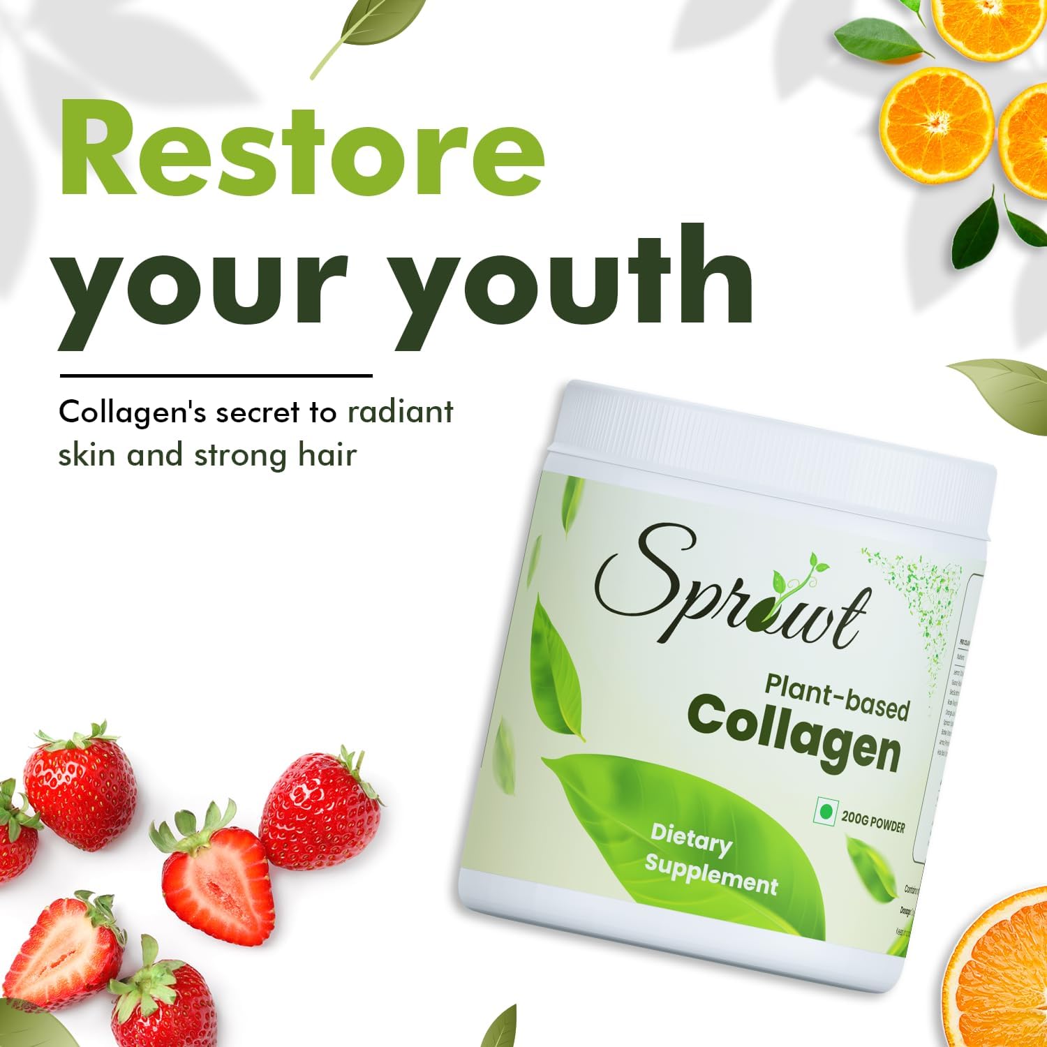 Sprowt Plant Based Collagen Builder 90GM for Youthful & Glowing Skin. Collagen Powder for Men and Women