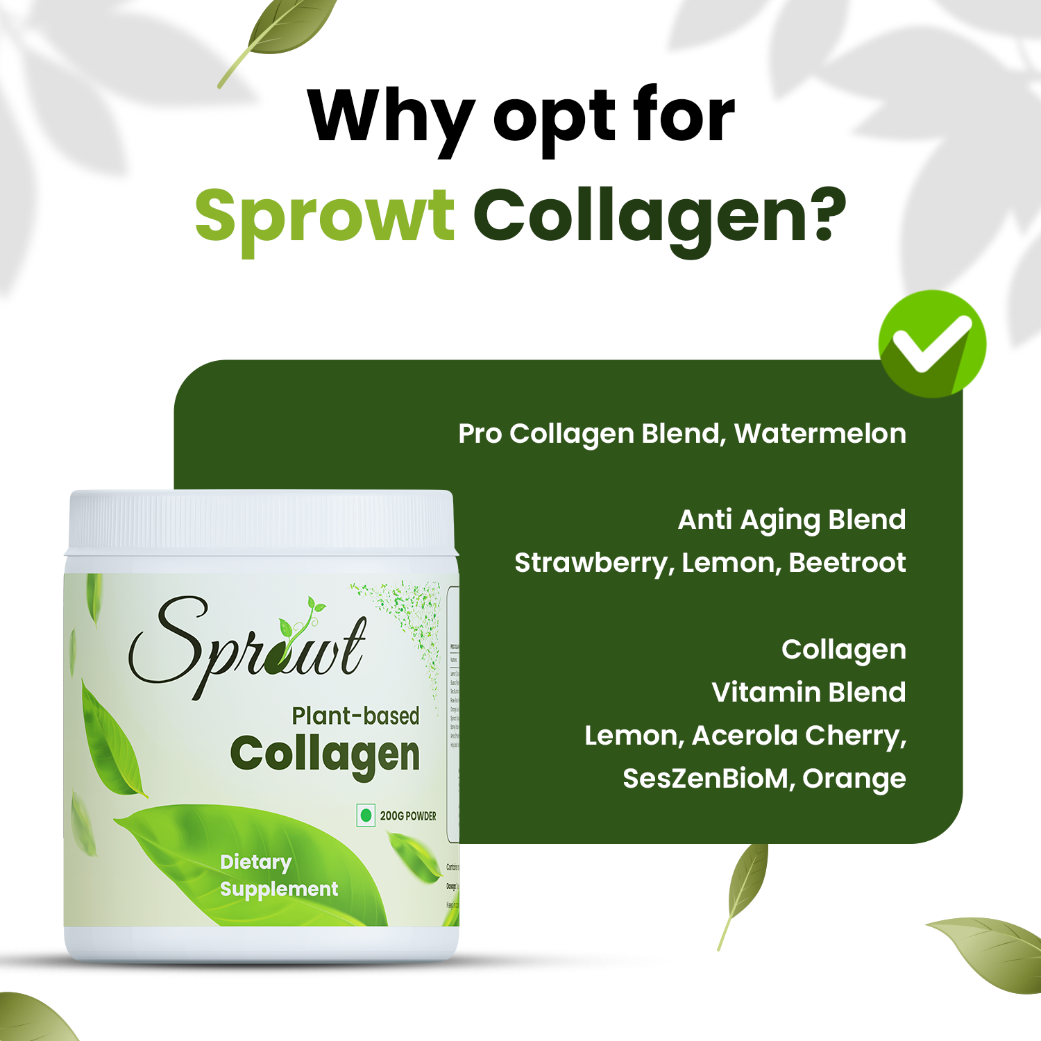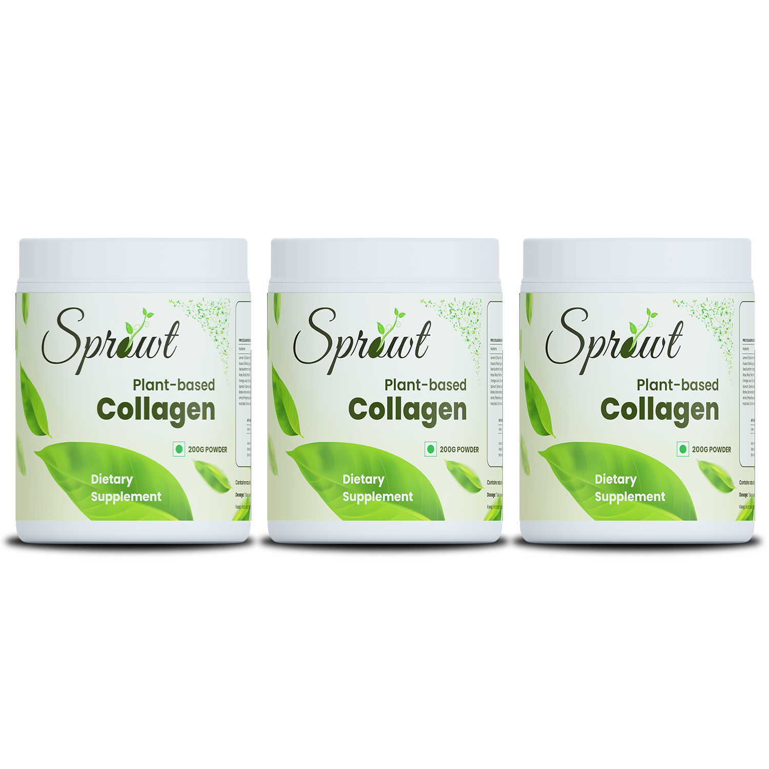 Sprowt Plant Based Collagen Builder for Youthful & Glowing Skin | Pack of 3, 200Gm Each